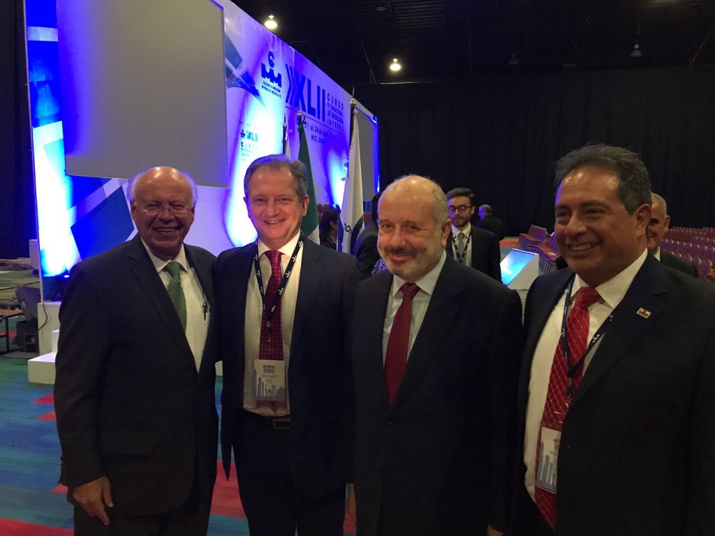 O presidente da SPMI Luís Campos com o ex-presidente da SEMI Emílio Casariego, o presidente do Curso Internacional de Medicina Interna, Eduardo Sierra e o ministro da Saúde do México José Narro, em 21 de Junho de 2017, na cidade do México.