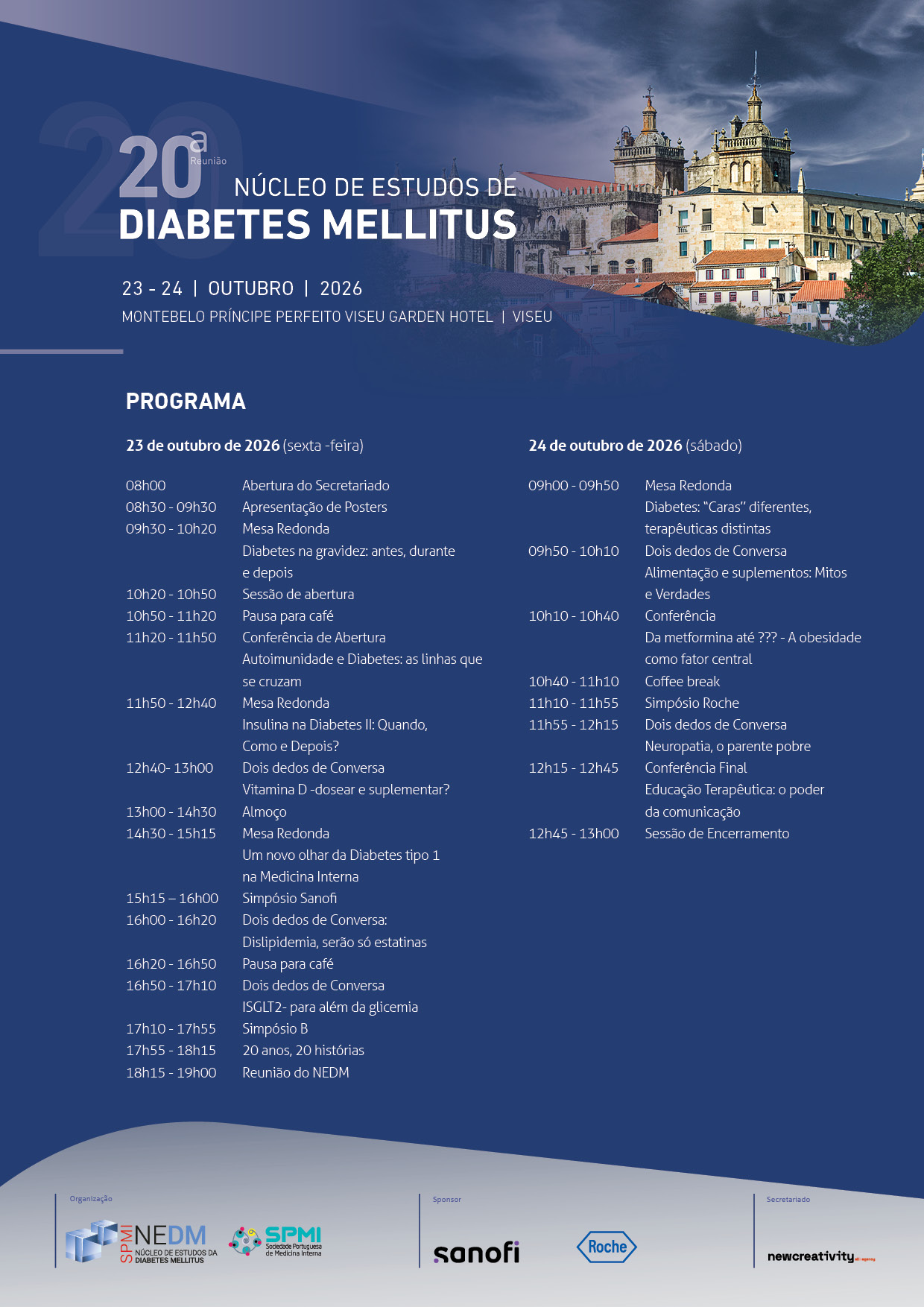 Inscrição na 20.ª Reunião do Núcleo de Estudos de Diabetes Mellitus – FAÇA AQUI A SUA INSCRIÇÃO