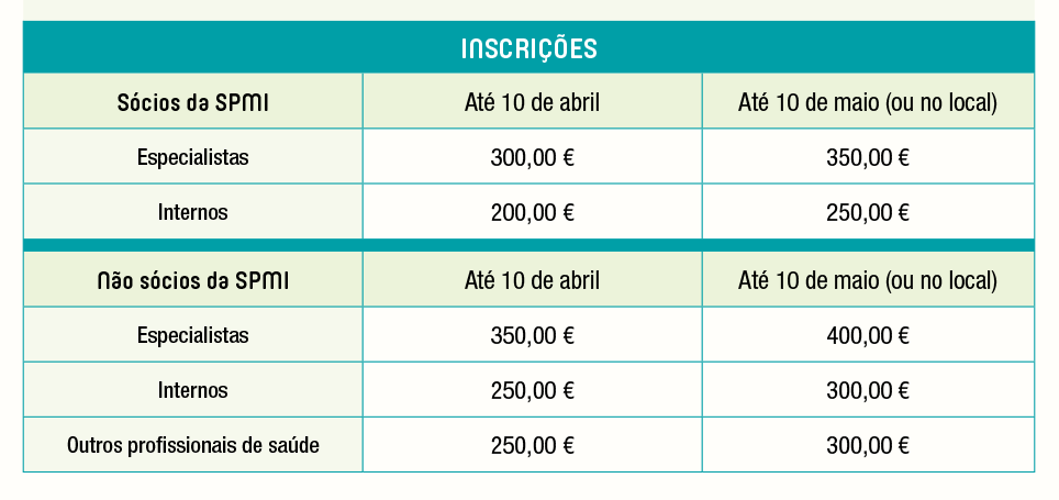 INSCRIÇÕES Faça AQUI a sua inscriçãoPolítica de cancelamento e devolução: – Até um mês da realização – Devolução de 75% do valor– Após essa data não se realizam devoluçõesA devolução do pagamento tem um custo de 10€ (despesas administrativas)