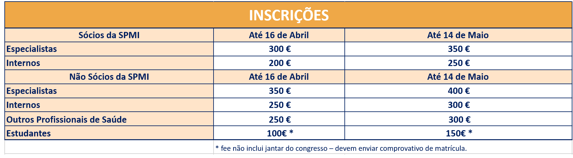 INSCRIÇÕES CONGRESSO Política de cancelamento e devolução: – Até um mês da realização – Devolução de 75% do valor– Após essa data não se realizam devoluçõesA devolução do pagamento tem um custo de 10€ (despesas administrativas)